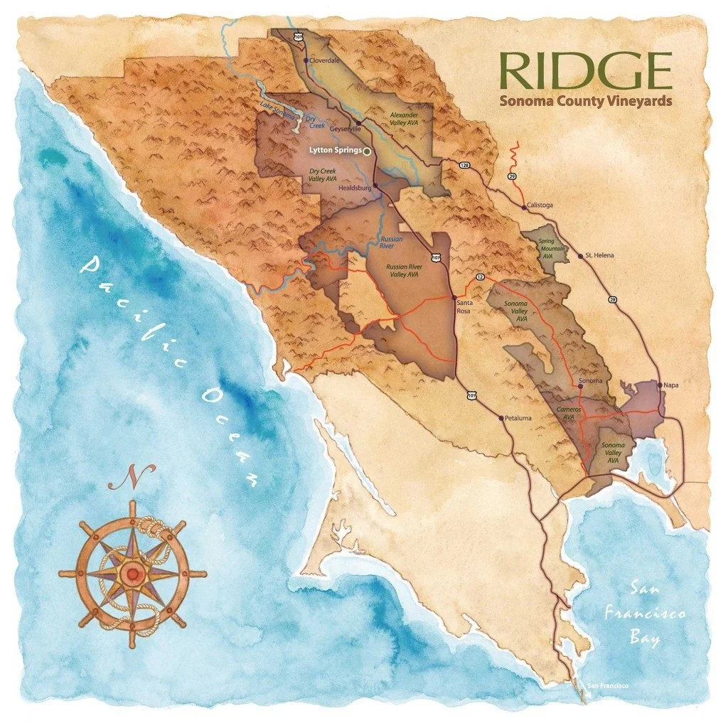 Ridge is the only winery we visited that is distributed in Seattle. We’ve carried their wines for more than 20 years, and they are outstanding vintage after vintage. They have several estates.